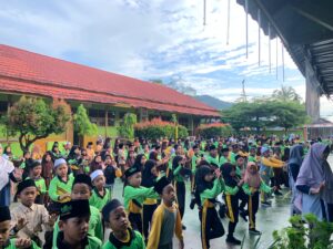 Jum’at pagi 21 November 2025 suasana sekolah tampak lebih ceria dari biasanya. Semua siswa dan guru berbaris dihalaman sekolah dengan rapi untuk mengikuti senam bersama yang rutin dilaksanakan setiap jum’at ketiga setiap bulannya. Ibu Evin Arisa dan Pak Yuda Wijaya sebagai guru olahraga serta beberapa siswa kelas 5 memimpin gerakan demi gerakan dengan jelas, sementara siswa dan guru yang lain mengikuti dengan kompak dan bersemangat. Meskipun keringat mulai keluar membasahi dahi dan tubuh, senyum tetap menghiasi wajah semua peserta. Kegiatan senam pagi ini bukan hanya membuat tubuh sehat, tetapi juga mempererat kebersamaan di antara siswa dan guru.
