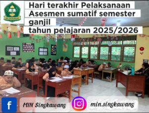Rabu, 03 Desember merupakan hari terakhir pelaksanaan asesmen sumatif di MIN Singkawang. Suasana pagi ini  terasa lebih tenang dibandingkan hari-hari sebelumnya, namun peserta didik tetap tampak semangat dan konsentrasi. Mereka datang dengan persiapan yang matang dengan membawa perlengkapan yang diperlukan dan saling melempar senyum  sebelum memasuki ruangan.